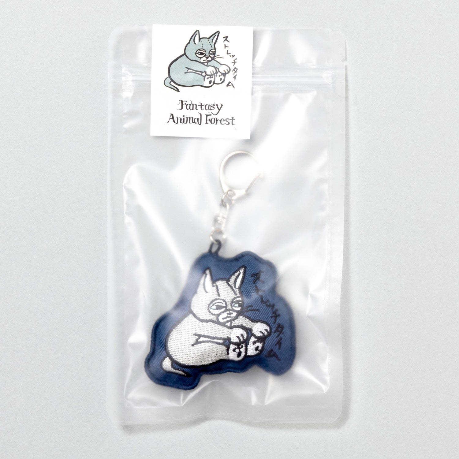 刺繍キーホルダーC ニャンコストレッチタイム