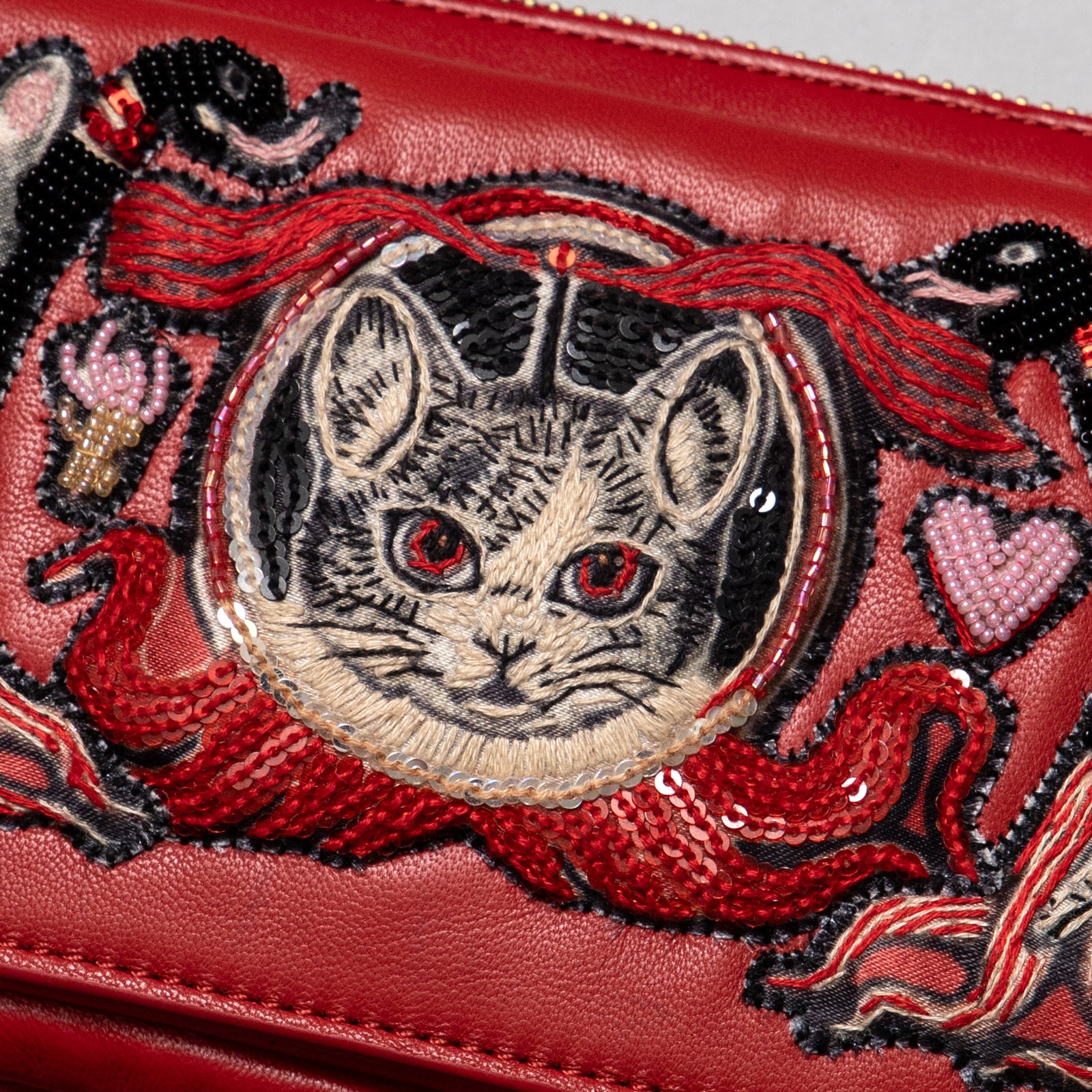 手刺繍の羊革製です。
