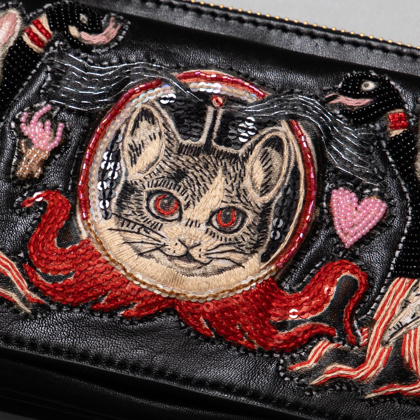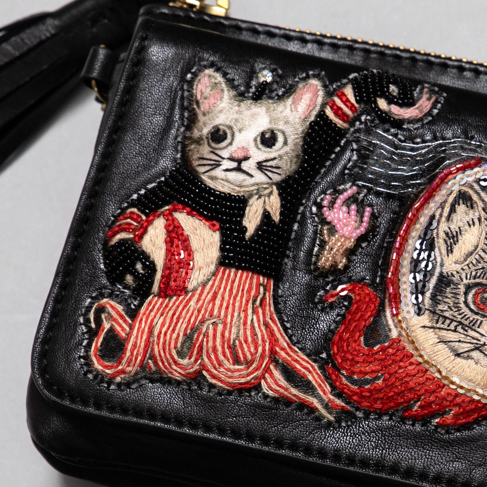 手刺繍の羊革製です。