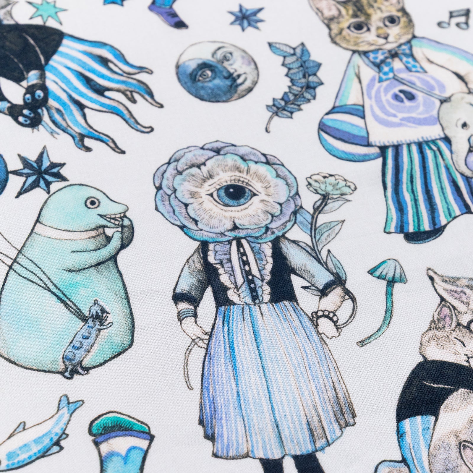 ※濃色の色面などに白い点がある場合がございます。絵柄を染め付ける時に生地の糸屑などがついた部分だけ染めきれていないことで起こるものです、また色むらやにじみなど染め物の風合いとして、ご理解いただけますと幸いで